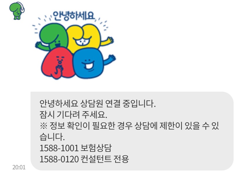 콜센터를 통한 보험상담을 하려면 전화량이 많은 경우 특히 월요일, 월말, 월초에는 전화량 폭주로 인해 더욱 통화가 어렵습니다. 이럴 땐 아래 채팅상담, 전화상담예약서비스를 이용하시면 기다리지 않고, 편리하게 상담하실 수 있습니다.