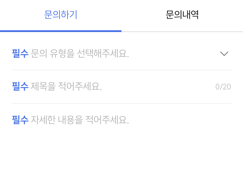 문의 유형을 선택하고 문의 사항의 제목과 내용을 작성합니다. 사진을 첨부할 수도 있습니다.