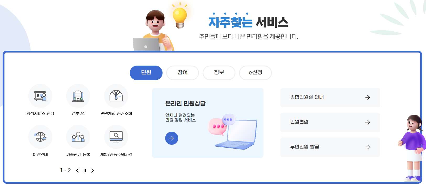 주민등록·가족관계등록·인감·토지·건축 ·공시지가·자동차·토지이용확인·세무 |