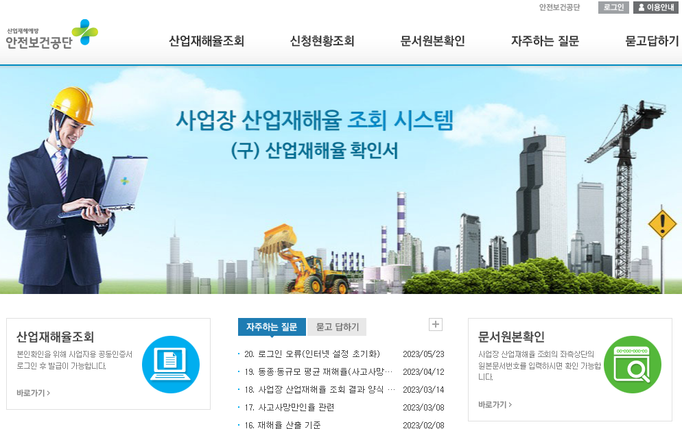 로그인 : 로그인 : 사업장 산업재해율 조회시스템 : 한국산업안전보건공단