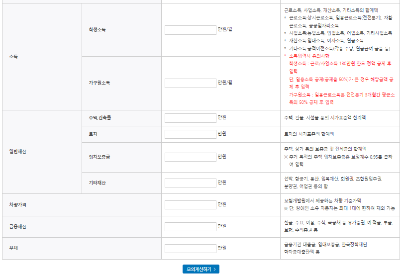 해당 항목을 입력한 후 맨 아래 모의계산하기 버튼을 누르시면 됩니다.
