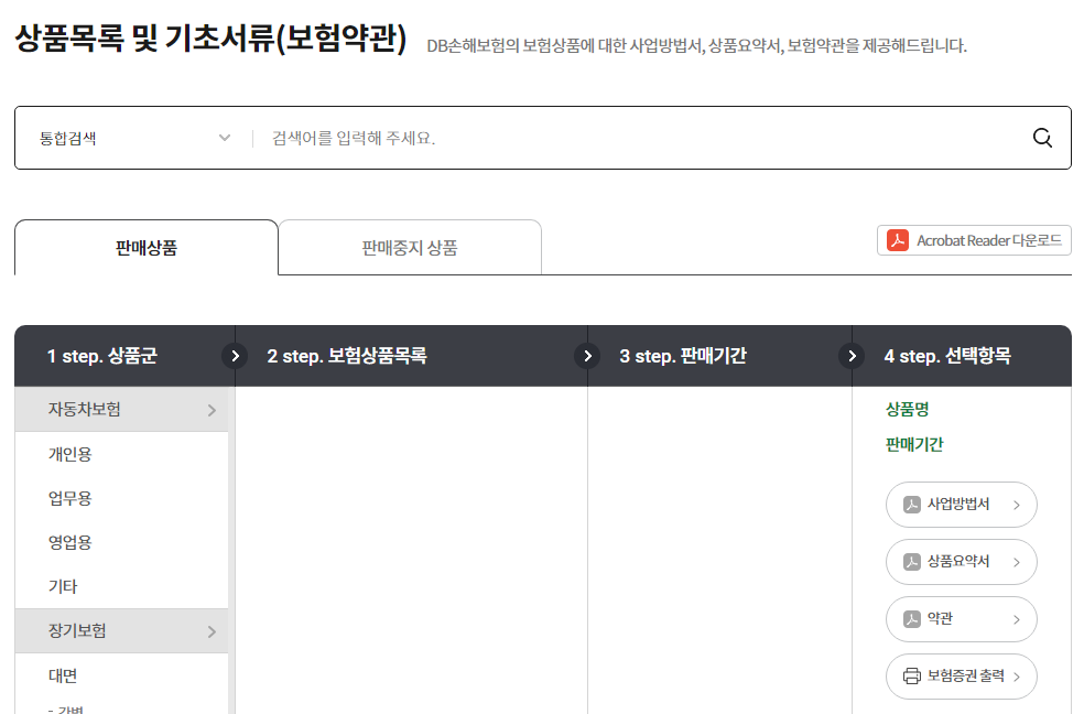 약관 검색: 약관 관련 페이지에서 자신의 보험 상품명을 검색하거나 리스트에서 선택하여 약관을 확인합니다.