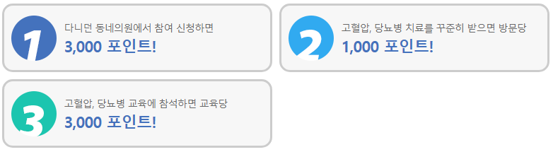 본 태성 고혈압이나 당뇨병 환자가 동네의원에서 꾸준히 치료를 받거나 자가 관리 교육을 받으면 건강포인트가 생겨서 이 포인트로 추가적인 건강관리(필수검사,예방접종)를 받을 수 있는 제도입니다.