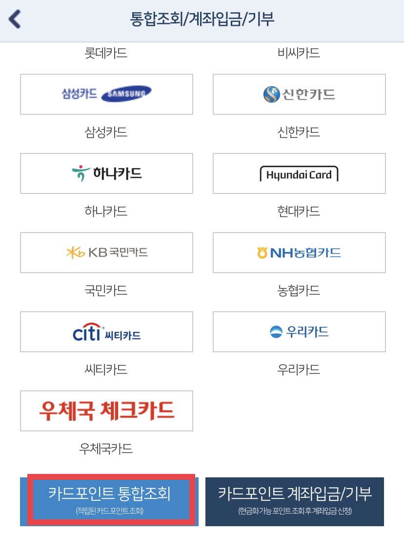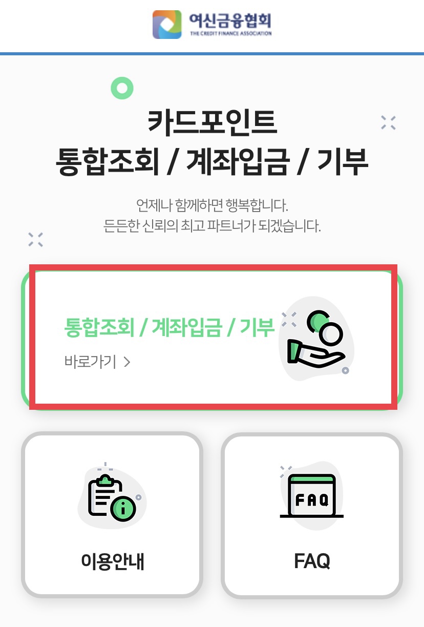 카드포인트통합조회 / 계좌입금 / 기부 언제나 함께하면 행복합니다. 든든한 신뢰의 최고 파트너가 되겠습니다.