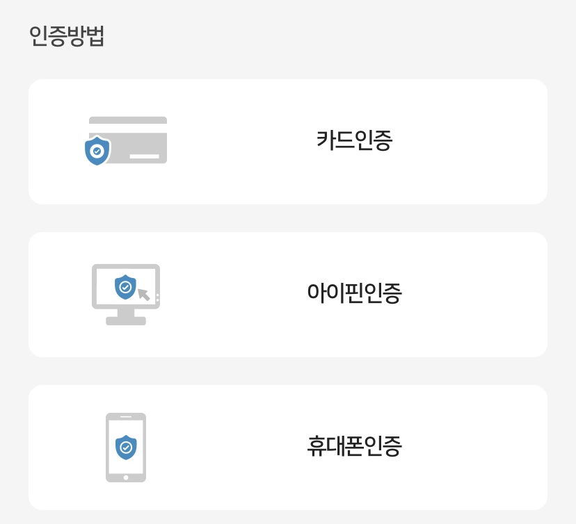 (휴대폰/카드/IPIN 인증 중 한 가지 방법을 선택하여 본인 인증)
