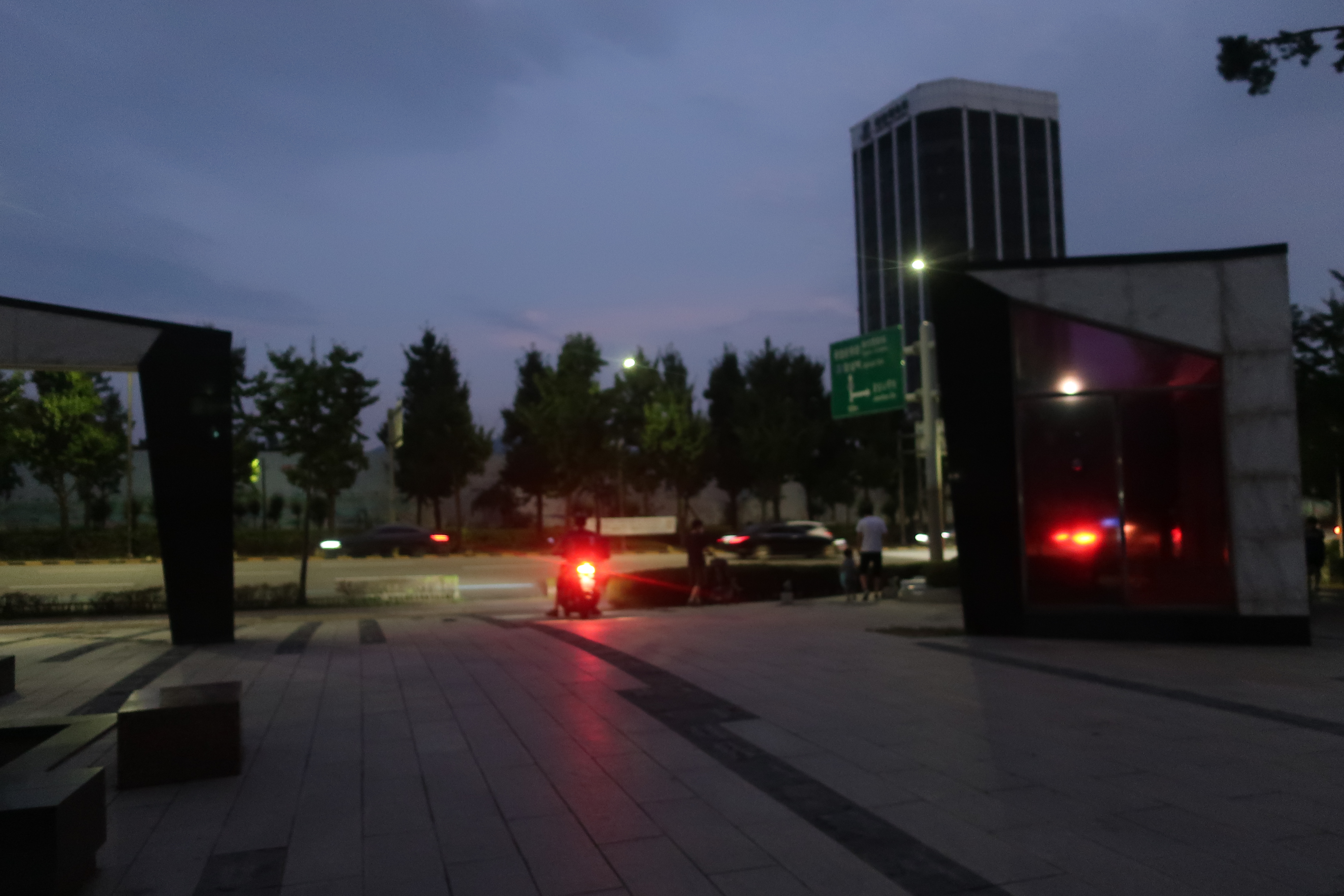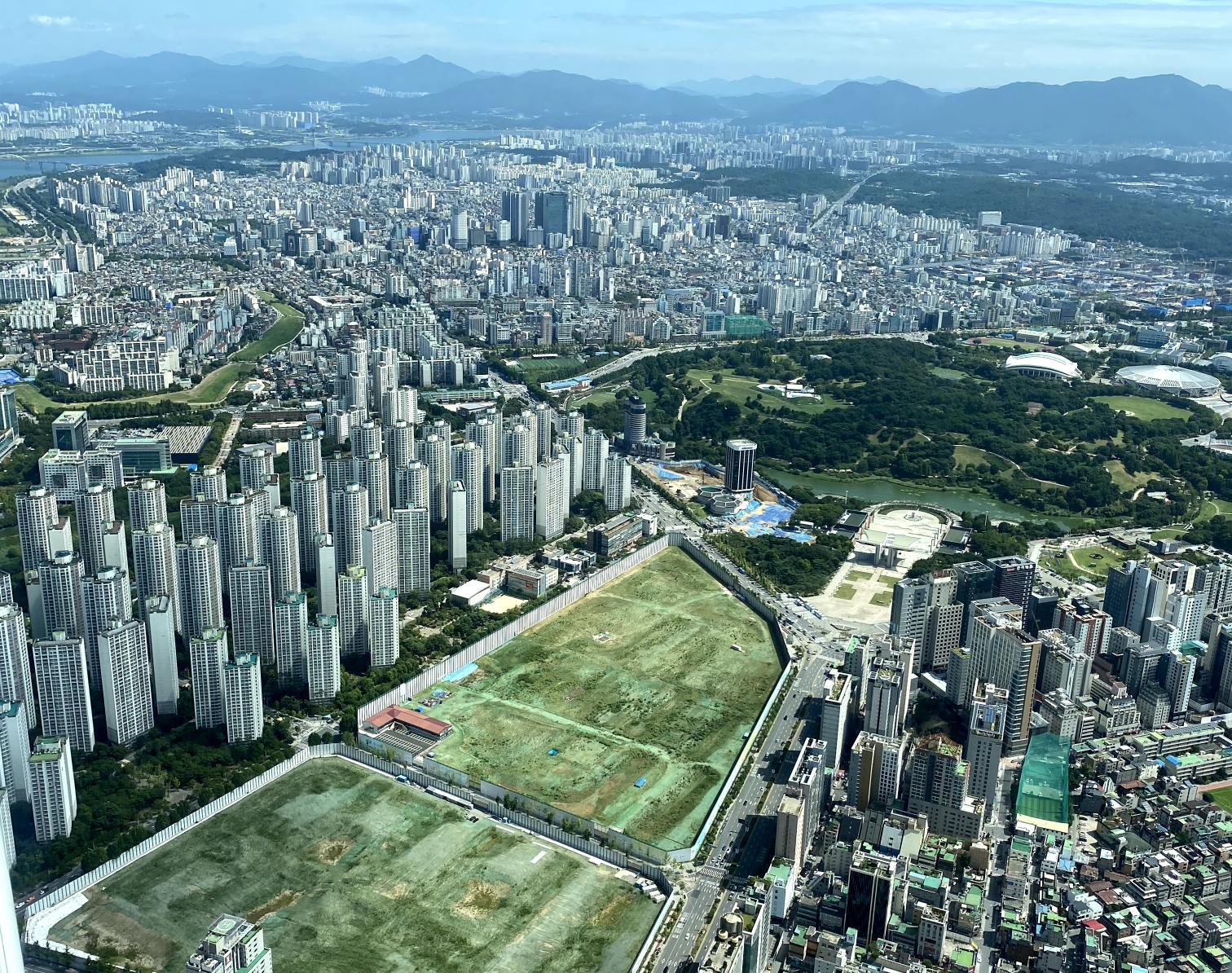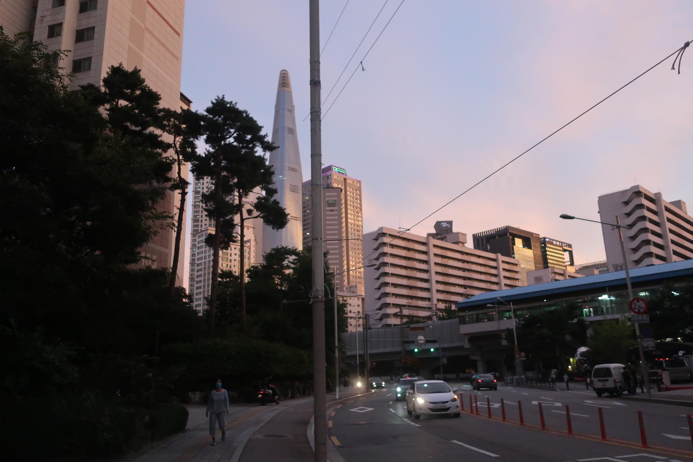저 멀리 롯데타워가 보입니다. 잠실 아파트 파크리오의 중앙대로는 밤낮으로 오고가는 사람들로 붐비는 편입니다.
