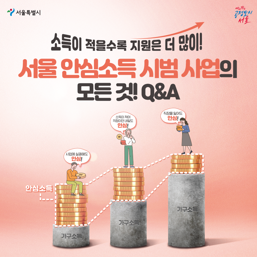 서울시는 ‘안심소득’이 기존 사회보장제도의 빈틈을 보완해 공공의 사회안전망을 더 촘촘하게 하는 역할을 할 것으로 기대하고 있습니다. 정부로부터 공식 승인을 받은 만큼 시의회와의 협의를 원만하게 진행해 시범사업을 차질 없이 추진한다는 계획입니다.