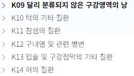 사랑니 발치 질병코드는 K09~K14입니다.
